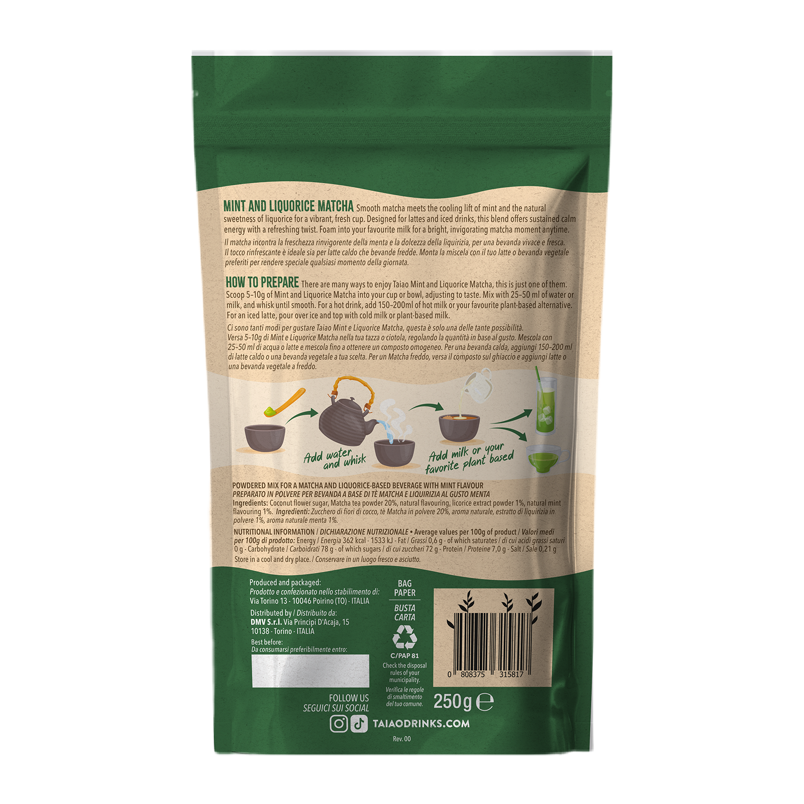 Smooth Japanese matcha meets the cooling lift of mint and the natural sweetness of liquorice for a vibrant, creamy cup. Designed for lattes and iced drinks, this blend offers sustained calm energy with a refreshing twist. Foam into your favourite milk for a bright, invigorating matcha moment anytime.