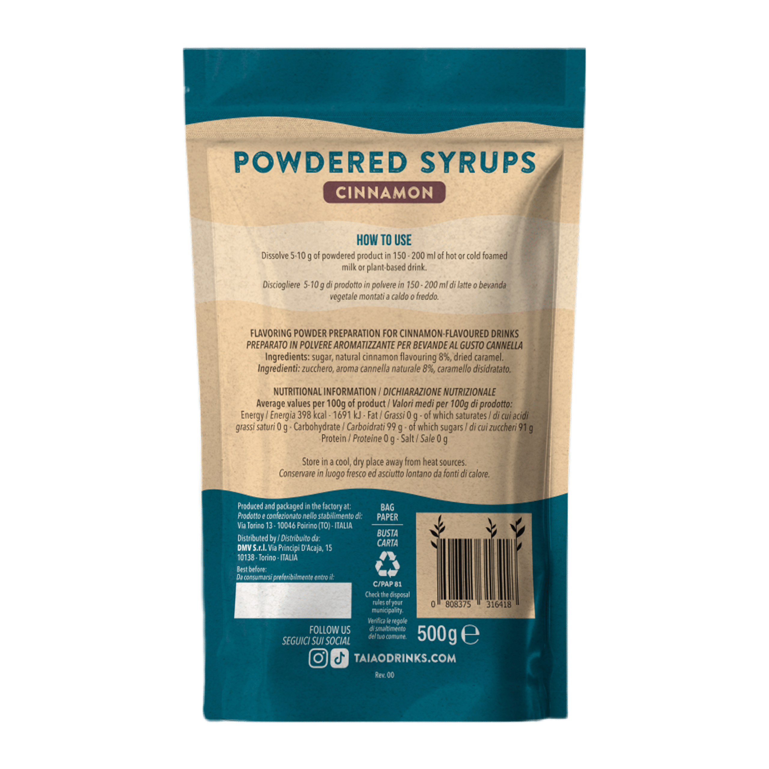 The warm and aromatic essence of cinnamon, offering a comforting spiced flavor to lattes, coffees, or baked goods.